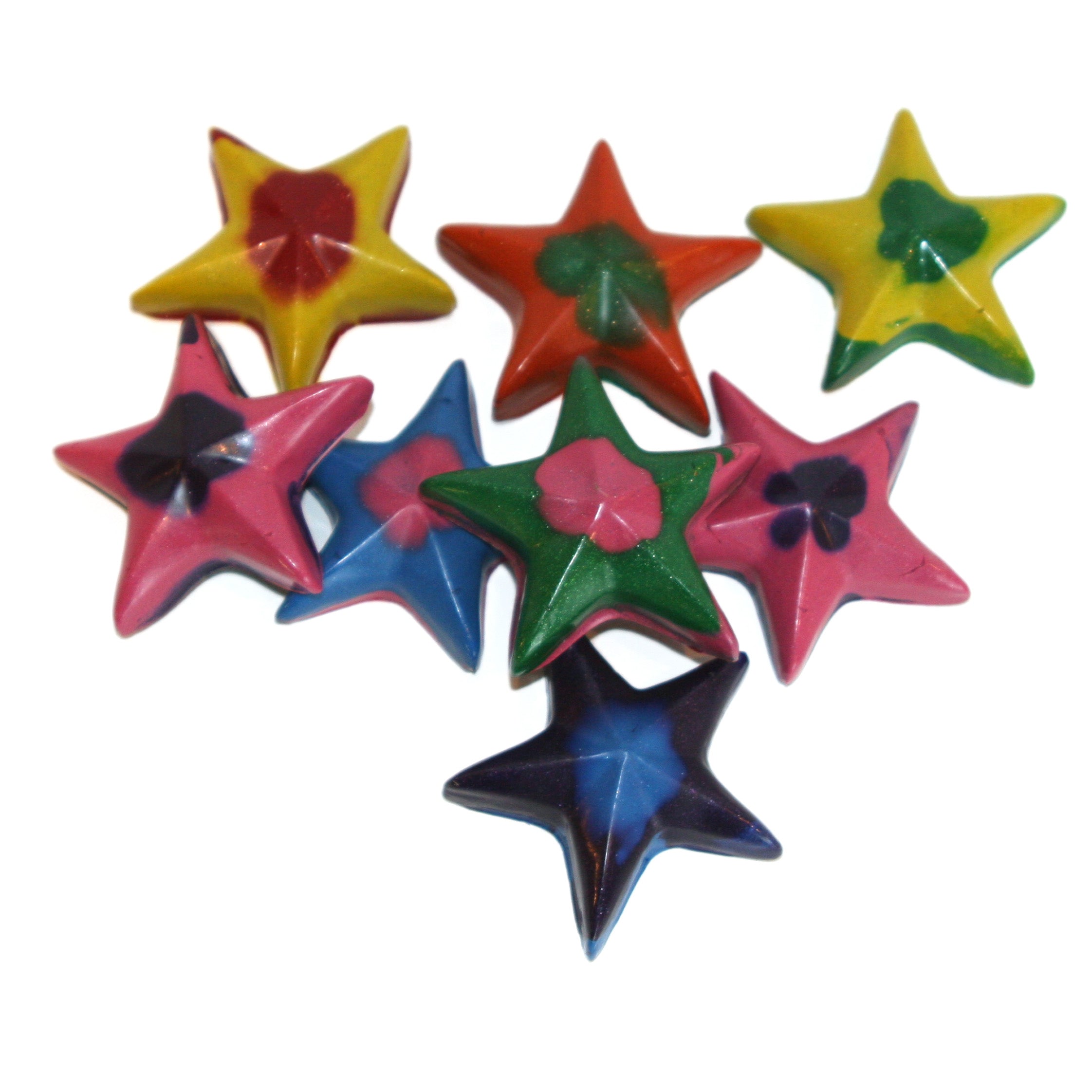 We love these star crayons! Not only are they fun to use with their 5 coloring tips, but they are also made in USA from crayons collected by the National Crayon Recycle Program. The purchase of this product supports crayon recycling and saves millions of crayons from landfills. Available in sets of 8 or 16 solid colors or party pack of 10 swirled stars, individually packaged in a 2 x 2 kraft box (perfect for party favors, Easter baskets, stocking stuffers, Valentine's Day, Halloween and more). Crayon stars are handmade from recycled crayons and colors may vary.